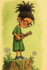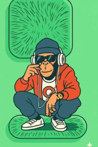 Stylish monkey chills wearing headphones and shades in cartoon style.
