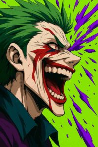 Ferocious joker screams wildly with sharp grin and chaotic energy.#JokerMadness