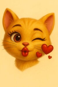 Adorable cat winks sweetly while blowing cute little heart kisses.