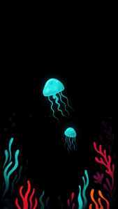 Glowing jellyfish floating calmly in dark ocean depths. #AquaGlow