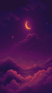 Glowing crescent moon over peaceful purple night sky. #LunaCalm