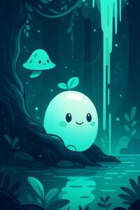 abstract wallpaper 4k: Magical glowing creature resting peacefully in a dreamy enchanted forest night.