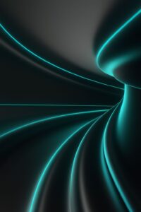 Smooth black curves lit by glowing cyber neon turquoise futuristic lines.