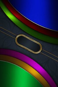 Premium colorful curved ribbons crossing over textured black background with golden frame.