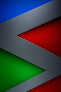 Sharp metallic zigzag pattern slicing through bold red and green gradient.