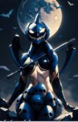 anime wallpaper of a dark armored warrior under full moon, mysterious and powerful fantasy background.