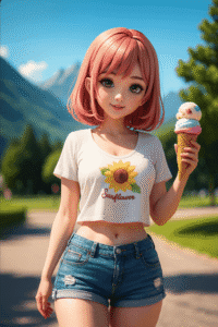 Cute anime girl holding ice cream, summer vibes everywhere.