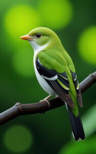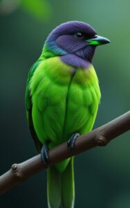 Graceful green plumage blends softly with nature’s serene forest glow.