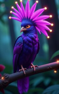 Purple-gold feathers gleam like enchanted jewels of wild paradise.#MysticFeather