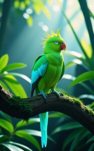 Emerald feathers guard the jungle’s heart with calm ancient strength.