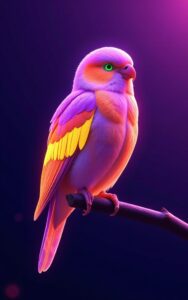 Luminous plumage radiates pink fire under cosmic purple light.#NeonPulse