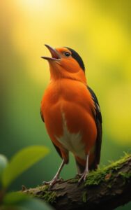 Golden sunset kisses bright feathers, blending spring and twilight hues.#SunsetWhisper