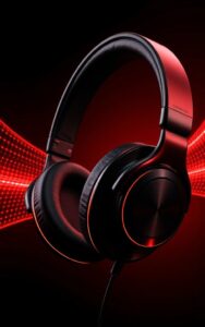 High-performance red headphones glowing intensely with immersive audio.#SoundBeast