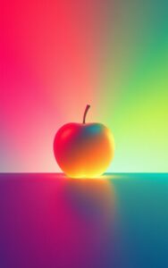 Vibrant neon apple glowing under mesmerizing colorful gradient background.