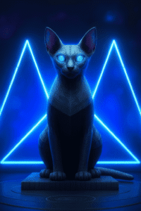 Futuristic sphinx cat glowing with blue neon mystic energy. #Cyberpunk
