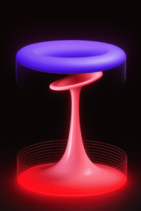 Futuristic liquid shape connects two glowing rings in harmony. #Abstract