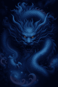 A fierce blue dragon roars through the endless cosmic night. #Mythical