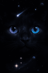 A black cat’s blue eyes reflect entire galaxies and stars. #Galaxy