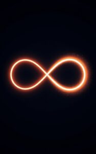 Glowing neon infinity loop shining brightly against deep dark background.#InfinityGlow