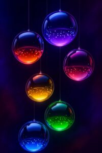 Floating glowing orbs shine beautifully in vibrant multicolored neon light.