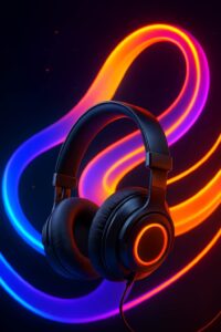 neon wallpaper 4k: Neon waves glow behind sleek black headphones creating energetic vibes.