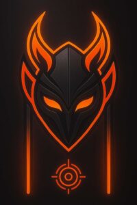 Fiery orange demon mask glowing boldly with strong futuristic design.