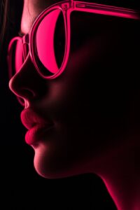 Pink neon reflections highlight her bold silhouette with electric elegance.#NeonBeauty