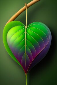 Gradient heart-shaped leaf glows softly with vibrant natural detailing.