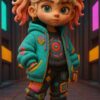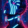 Glowing neon markings illuminate his fierce expression under cyber night. #NeonWarrior