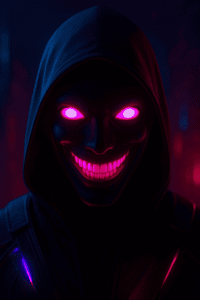 “Glowing monster smile with hypnotic neon eyes staring back.” #CreepyGlow