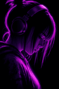 “Lost in music, neon girl glows with purple energy.” #NeonVibes