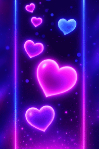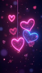 “Floating neon hearts glowing softly in dreamy love night.” #NeonHearts