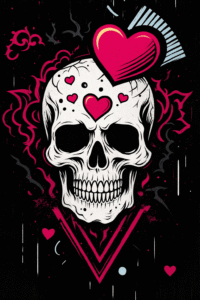 Dark skull design glowing with red hearts of burning passion.” #DarkLove