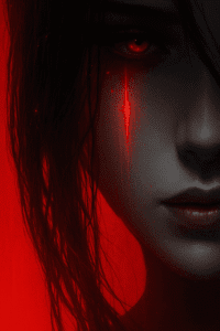 “Dark beauty with glowing red eyes burning with mystery.” #RedFlame