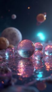 “Shiny cosmic spheres glowing like galaxies on alien ground.” #CosmicDream