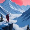 Majestic volcano erupting amidst snow-covered peaks and icy landscapes, capturing nature’s raw power and beauty. Perfect for adventure enthusiasts and landscape admirers.