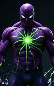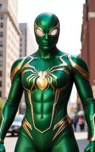 Emerald spider fighter glowing with golden venom power.#PowerSpider
