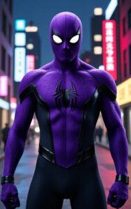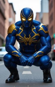 Urban spider warrior crouching strong with royal metal armor.#RoyalSpiderHero