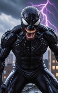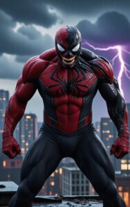 Terrifying hybrid monster with red symbiote suit, lightning power, unstoppable fury.#VenomBeast πΉ