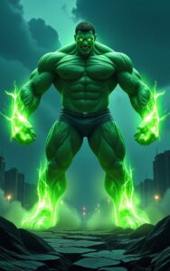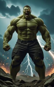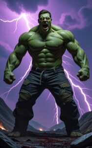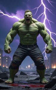 Raging green monster with thunder power, unstoppable strength shaking entire ground. #ThunderHulk π₯