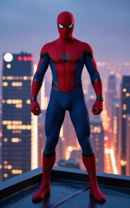 Spider hero standing tall above city, ready to protect all. #SkylineHero π·οΈ