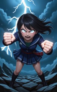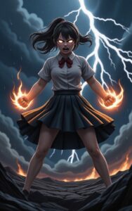 Angry anime girl with fire fists, lightning storm, unstoppable rage rising.#FlameGirl π₯