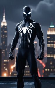 Black symbiote suit glowing bright, night protector with deadly power. #NightSpider π