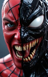 Half Spider hero half monster, terrifying transformation revealing unstoppable dark power. #Venomized πΈοΈ