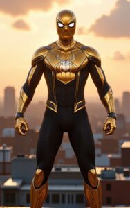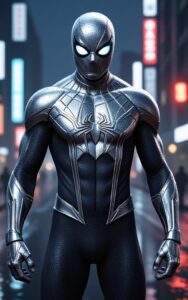 Silver-black armored spider suit built for night missions and strength. #SteelSpider π‘οΈ