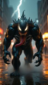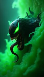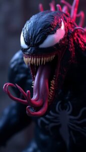 Venom’s terrifying roar with razor-sharp teeth and wild tongue captures pure monstrous chaos.